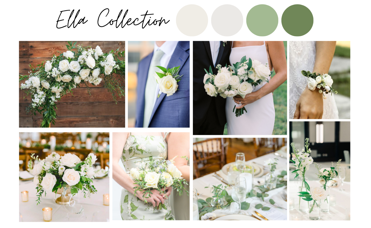 The Ella Collection features a variety of white blooms with lush, whimsical greenery. This classic color combination gives off a timeless, yet modern feel. If you love minimalism, elegance and nature, this collection if for you!